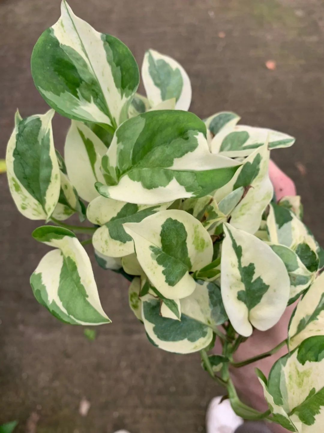 雪花葛是属于花叶绿萝里面的一个品种,它的叶子斑斓亮丽,叶面上有着白色和绿色相间的斑纹,这些斑纹是没有规则的,看起来非常有特色,如果养腻了普通叶子翠绿的绿萝品种,就可以尝试一下这些花叶绿萝。