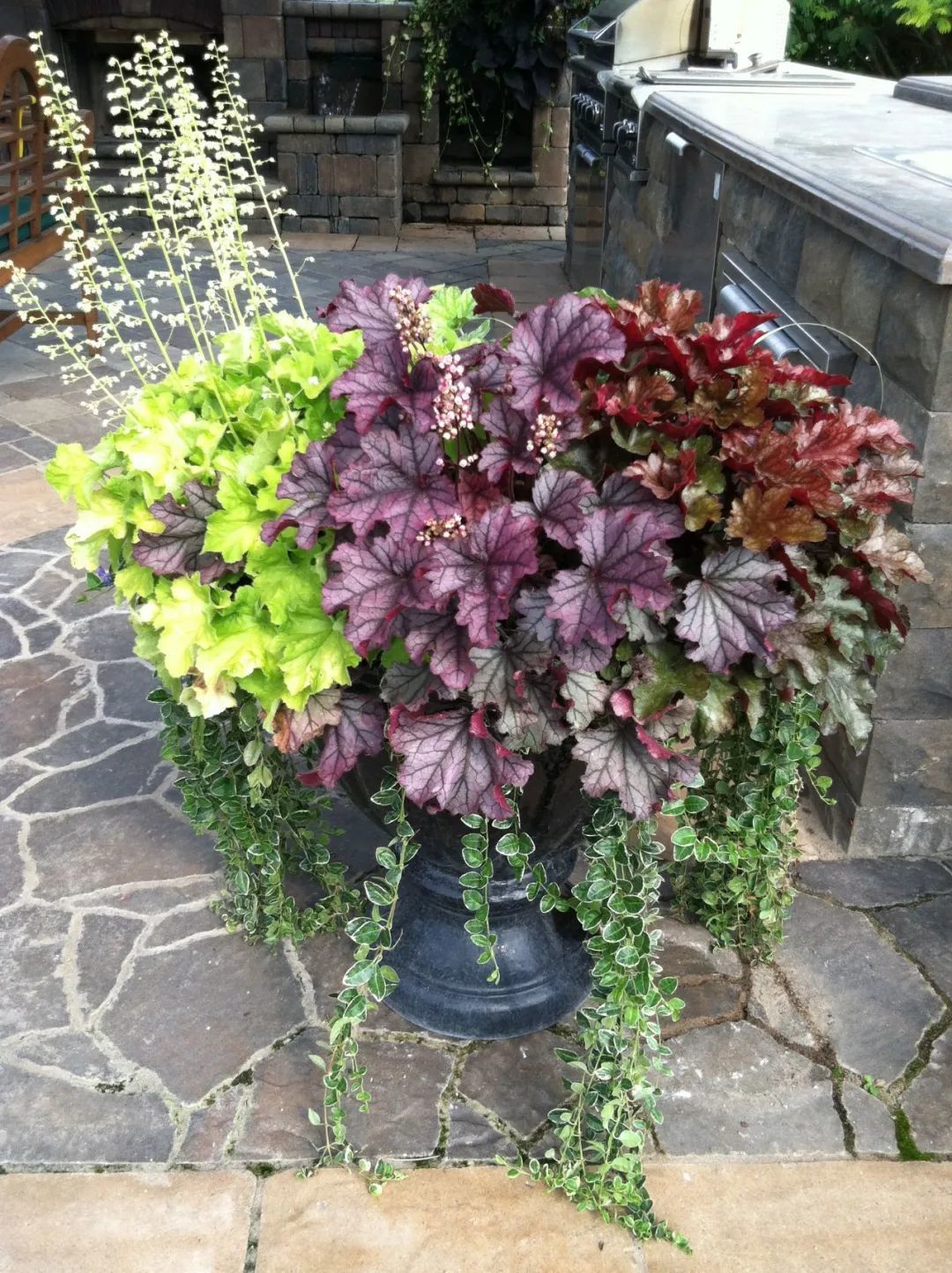 矾根各种不同颜色的品种,观赏性各不相同,可以将它们养成组合盆栽,在夏季需要遮阴养护,可以养在树荫下,保证环境通风,注意降温和控制浇水,就可以安全度过夏天?春秋季节,就可以每隔一两周给它补充一次花多多2号,偶尔补充一点磷酸二氢钾,促进孕育花朵。