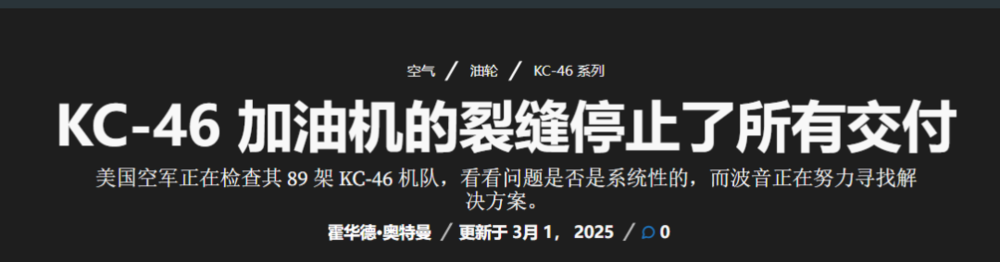 惊讶的地方在于,波音的各方面业务在最近几年表现的都不太好。737max系列的设计缺陷导致全球停飞;航天产品线方面,“星际客机”飞船测试被困的两个宇航员才回来;军用飞机生产线上,f15ex这个基于已有飞机的升级进度缓慢,KC46加油机的质量问题频发,甚至连给特朗普准备的新版空军一号,也要严重推迟。