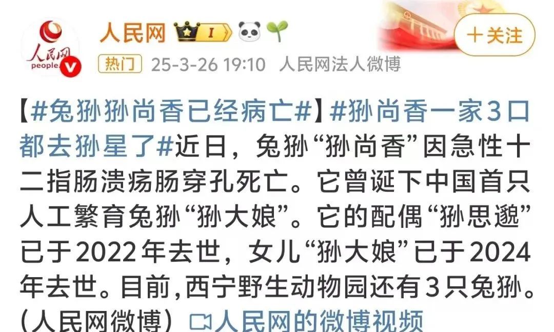 前几天,西宁野生动物园发布兔狲“狲尚香”离世的消息。