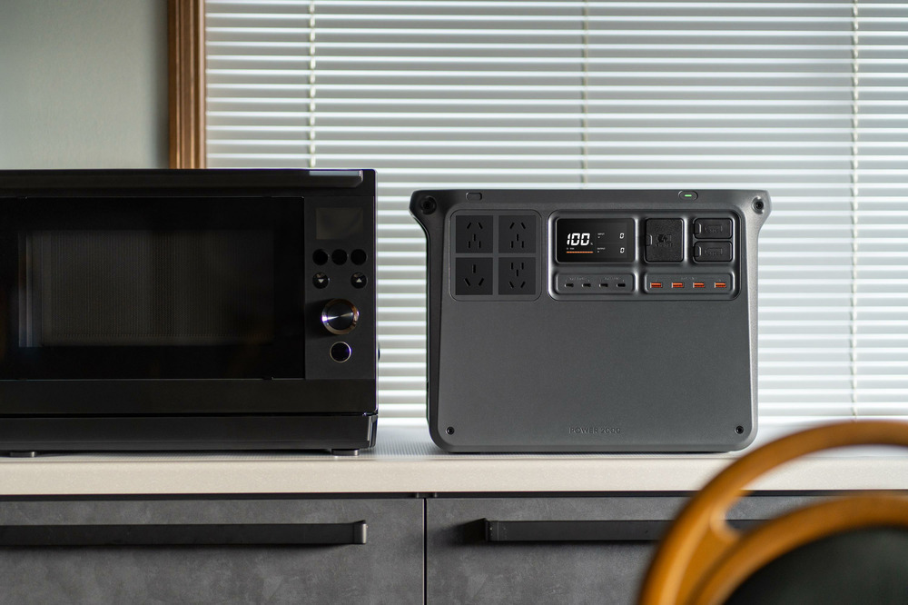 DJI Power 2000 能稳定保持 3000 瓦输出直至电量耗尽,轻松驾驭电磁炉、微波炉、烤箱等几乎所有家用电器[4]。配备 4 个 AC 输出口、4 个 USB-C 输出口、4个 USB-A 输出口,哪怕同时给手机、平板充电,外加多个高功率电器一起使用,供电也毫无压力。