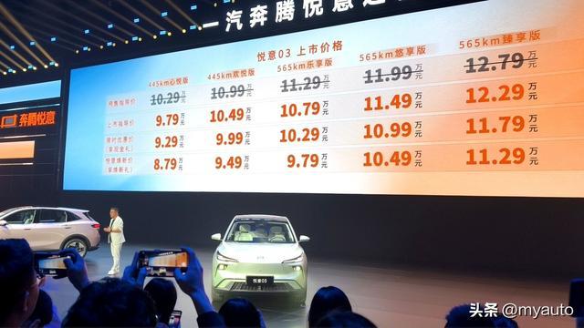 当车企们已经卷到用低价来吸引用户用高价来收割利润的时候,一汽奔腾悦意03成为了中国车市的一股清流。原本预售价10.98万元的入门款在上市的时候直接被砍,以次低配车型取代了它的位置。这就意味着一汽奔腾它没有采用常规的策略,而是把好的产品配置放在了第1位。