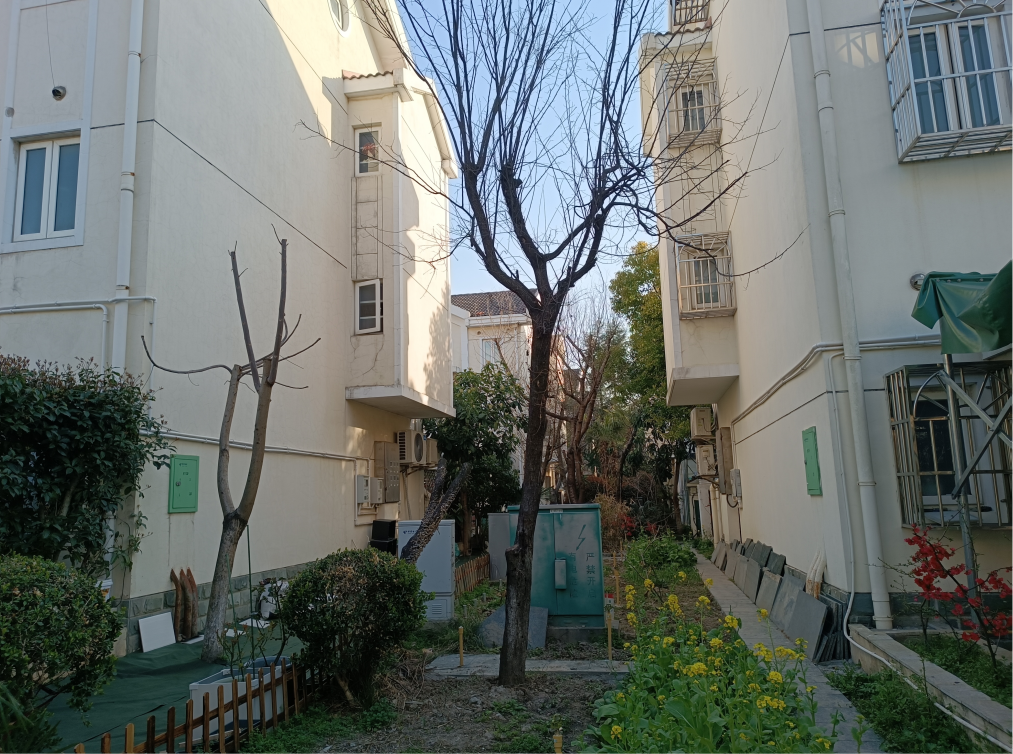 像老别墅之间的小绿化,看得出来很久没维护了,透出一股野生的感觉