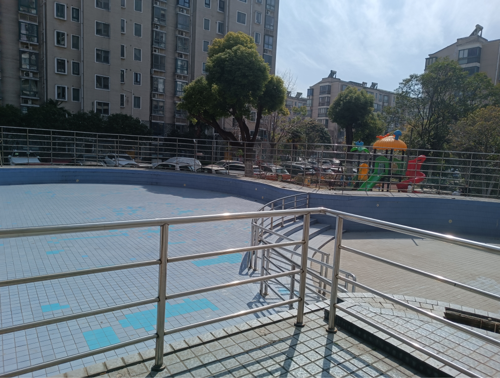 好不容易找到一个带泳池的,还是露天的