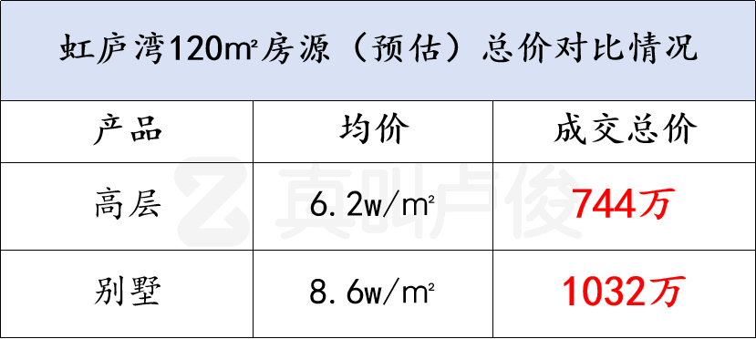 别墅的价格基本都是高层的1-2倍
