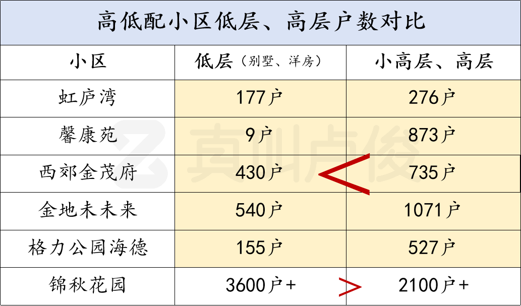 很多高低配小区的高层业主户数,普遍比低层多出1-2倍