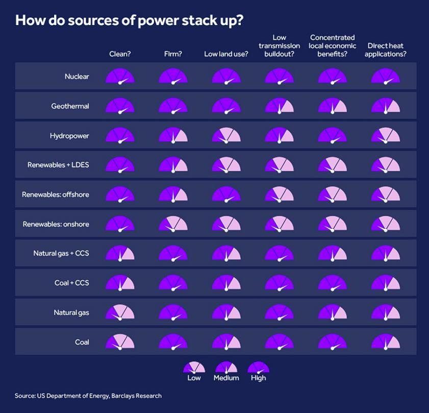 能源需求暴涨,但能够支持数据中心使用的稳定能源却不多。虽然据彭博社报道显示,亚马逊、Meta、Alphabet(谷歌母公司)和微软是长期清洁能源电力的最大买家。但清洁能源天生的不稳定性,难以满足稳定和“可调度”的需求。