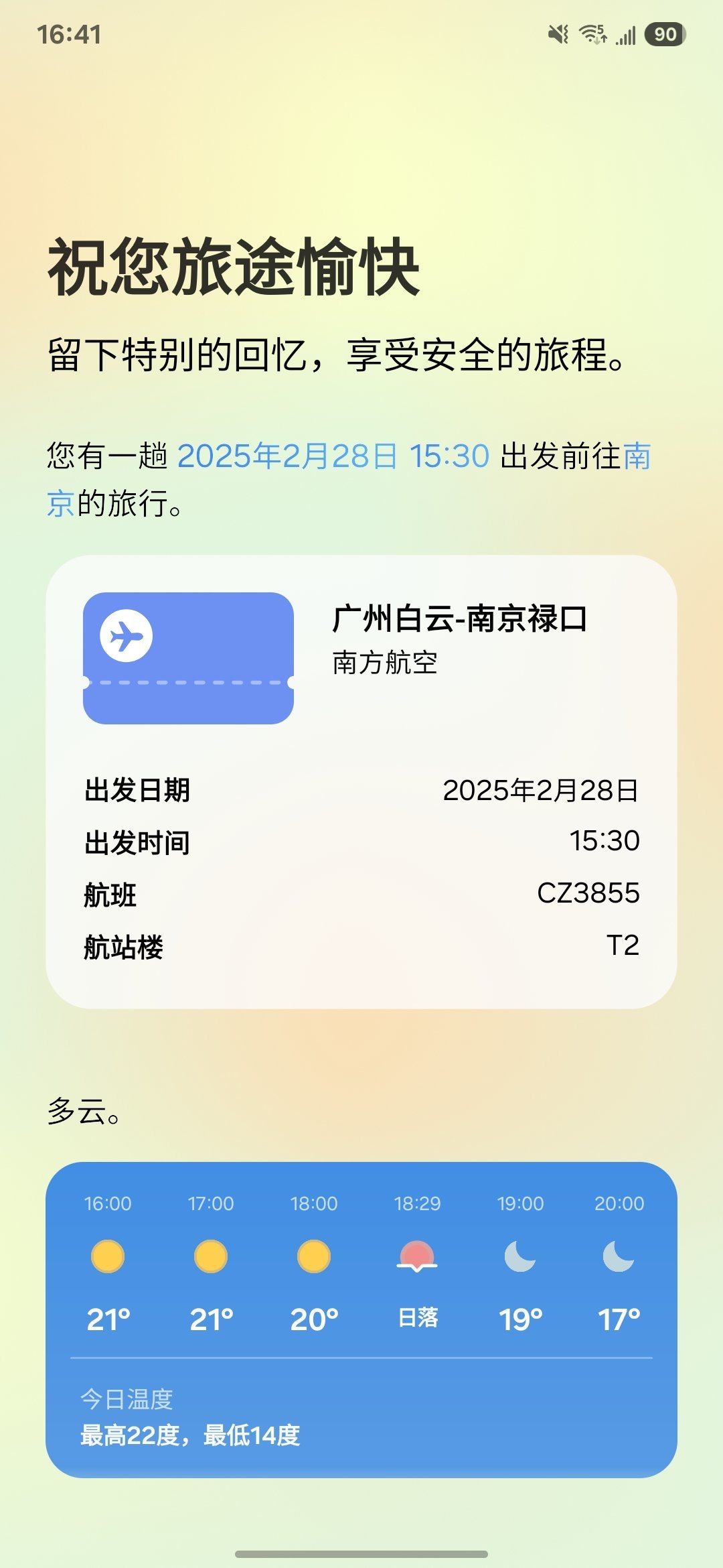我日常使用最多的就是「即时简报」,每天早上打开手机,锁屏界面下方就会有晨间简报。今天的天气、日程以及行程安排等信息,都能很直观地出现在简报中,并且实时信息或者恶劣天气会自动置顶,能让我好好安排一天的工作或者生活,非常实用。