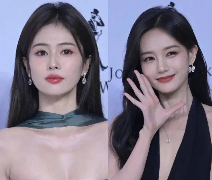 精致的五官、甜美的笑容,连气质都如出一辙。网友戏称:"这俩人要是演双胞胎,根本不用化妆!"