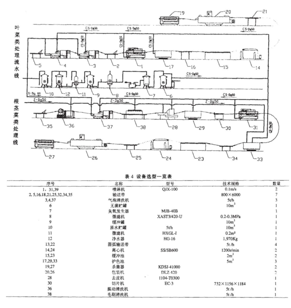 某净菜加工厂的流水线设备。