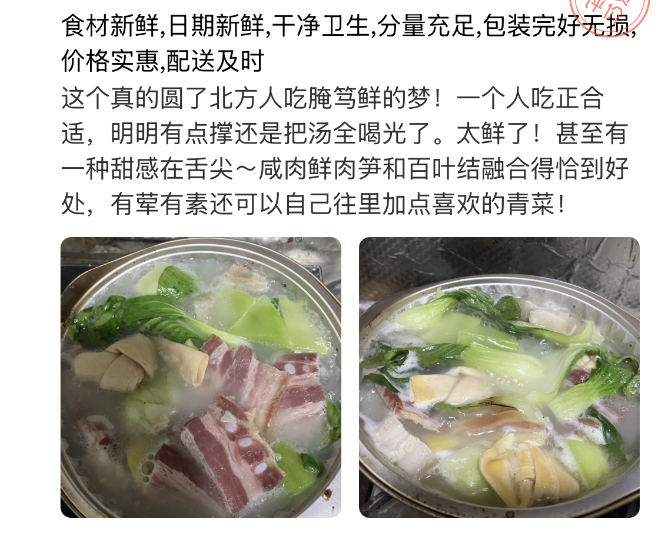 买净菜的话三十多块钱就够两个人吃,尝鲜这一次也就够了,还不用发愁剩下没做的咸肉后续该如何处理。