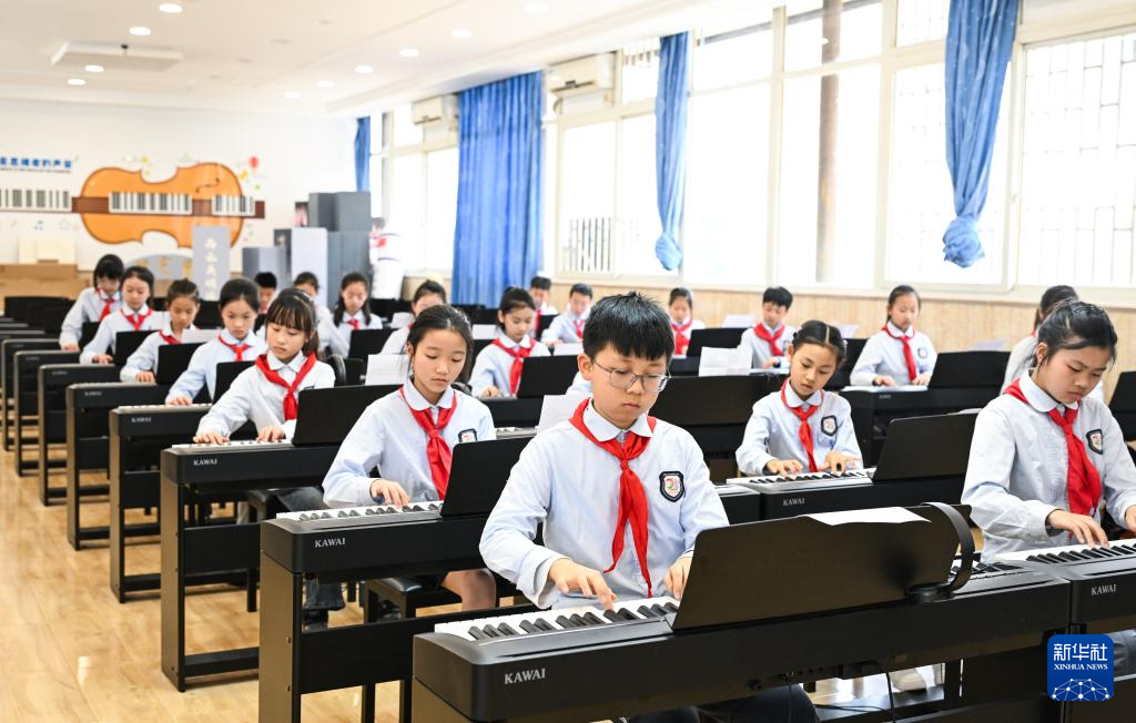 3月27日,重庆市江北区新村同创小学电子琴社团学生在练习。