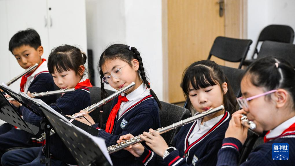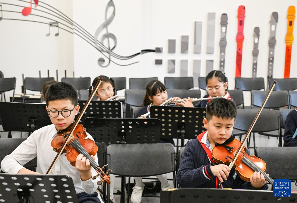 3月27日,在江北区的重庆巴川量子学校,交响乐社团学生在练习乐器演奏。