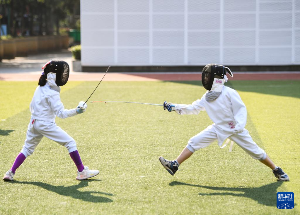 3月27日,重庆市江北区新村同创小学击剑社团学生在练习。