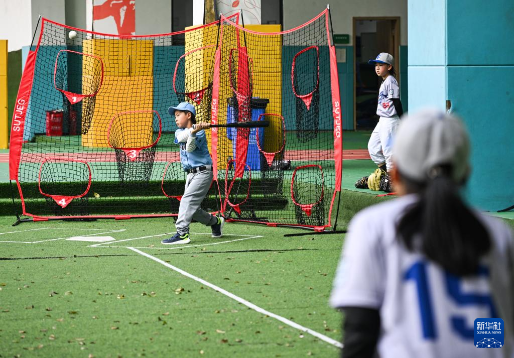 3月27日,在江北区的重庆巴川量子学校,棒球社团学生在练习打棒球。