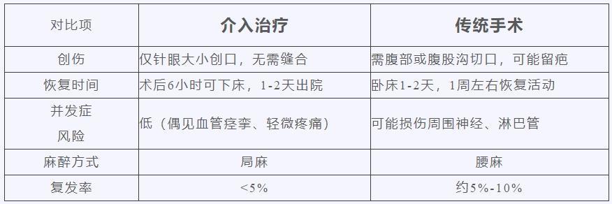 4. 术后观察:根据手术入路不同,前臂卧床2小时,腹股沟卧床12-24小时,无异常1-2天即可出院。