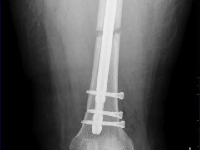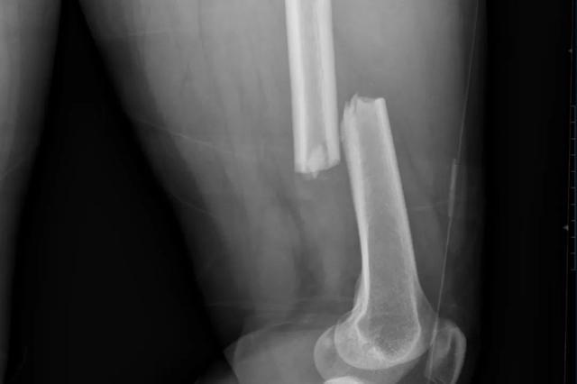 这场意外不仅让她的股骨遭遇罕见的“双段骨折”——左股骨干与转子间两处严重移位,更将骨二科团队推向了技术与勇气的双重考验。