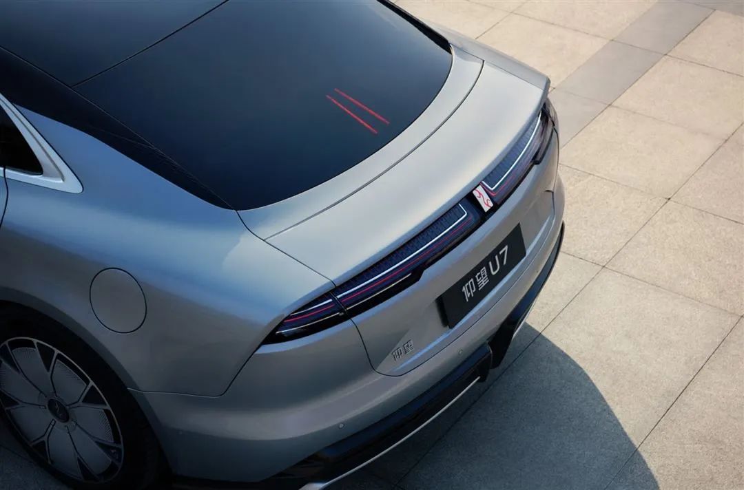 仰望U7定位大型轿车,车身尺寸方面,纯电版长宽高分别为5265/1998/1517mm,轴距为3160mm;插混版长宽高分别为5360/2000/1515mm,轴距3200mm。整个车身侧面都用到了高度低风阻化的空气学套件,线条修长车身看起来非常低趴。相对车头来说,车尾显得更加简洁,贯穿式尾灯中间是仰望的品牌LOGO。车尾加入了主动调节的扰流板,根据车速自动开启,当车速高于130km/h,自动升起增加车尾下压力。仰望U7风阻系数低至0.195Cd,看得出来,这台车对于风阻的优化肯定没少投入研发成本。