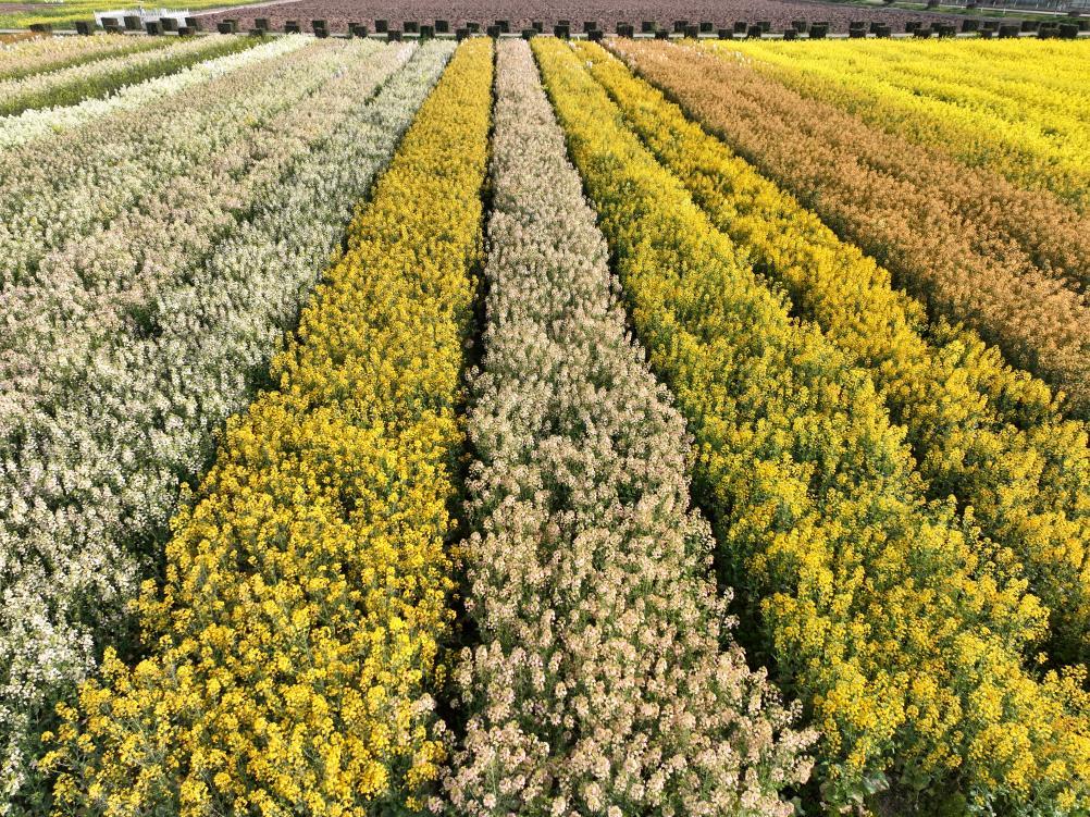 这是2024年3月份拍摄的位于中国农科院油料作物研究所阳逻基地的彩色油菜花田。(油料所供图)