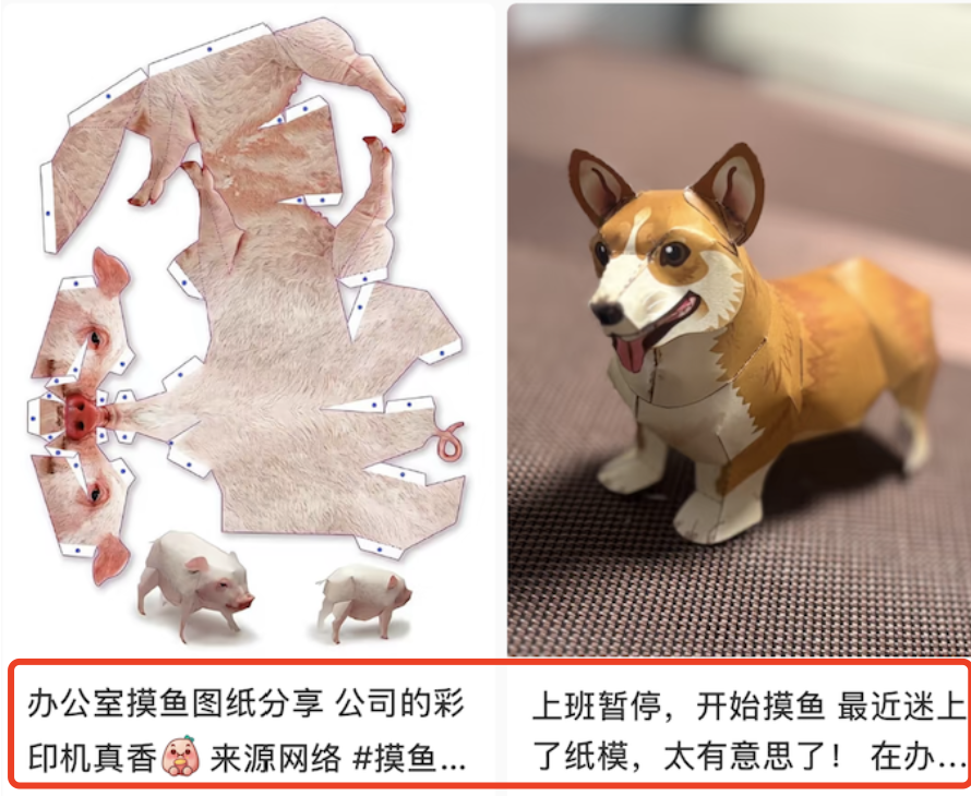 原本作为生产力工具的办公室打印机,意外成为打印“摸鱼纸模”的绝佳创作工具。