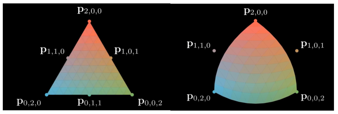 图 2:贝塞尔三角图元通过控制点来改变几何形状