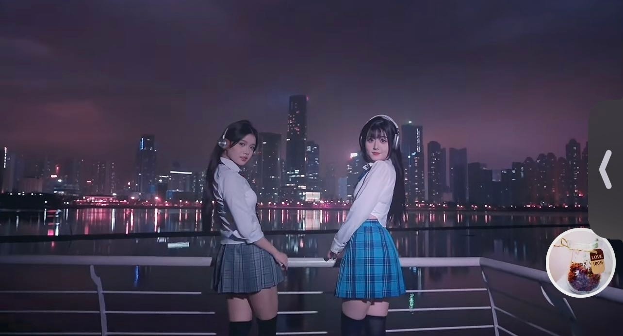 视频中,在夜幕将要来临的蓝调时刻,出镜人随着音乐、踩着轻快步伐,从岸边向平台走去,该亲水平台延伸到湖面,画面背景是水域对面的高楼林立、灯光亮起,在湖面上呈现出清晰的倒影。根据画面,九派新闻记者粗略数出超过40栋高层建筑,如果算上它们在水中的倒影,则几乎达到近百栋高楼同框。楼群的灯光犹如繁星,打卡者仿佛站在群星之间。