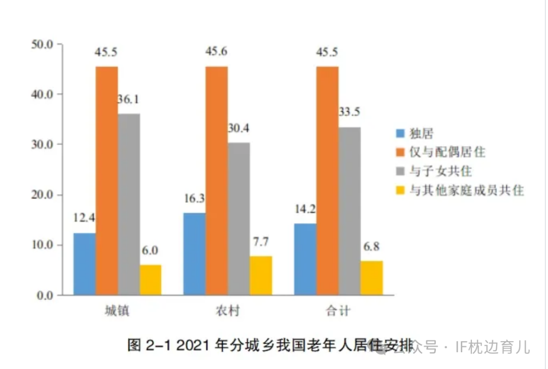 卫健委公布的一组统计数据显示,2021年城乡老人居住安排中,城镇老人占比,比农村老人占比多6%左右。根据调查结果显示,越来越多的有娃家庭中,老年人成了带娃的主力军。