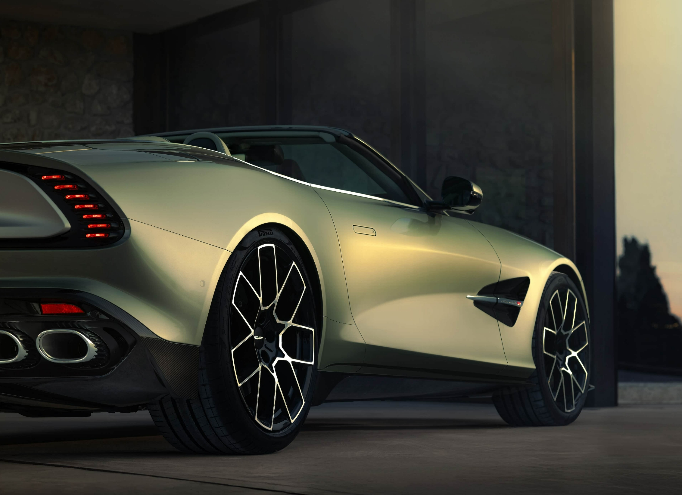 车身侧面通过独特的腰线设计,将长车头与溜背车尾自然衔接,营造出如同豪华游艇般的优雅比例。新车的敞篷结构采用创新的K型折叠软顶设计,14秒内即可完成开合。车尾部分,鸭尾式扰流板与双边四出排气布局形成视觉焦点,车主还可选装的钛合金排气系统,不仅减重10.5公斤,更将V12引擎的声浪变得更为纯粹炸裂。
