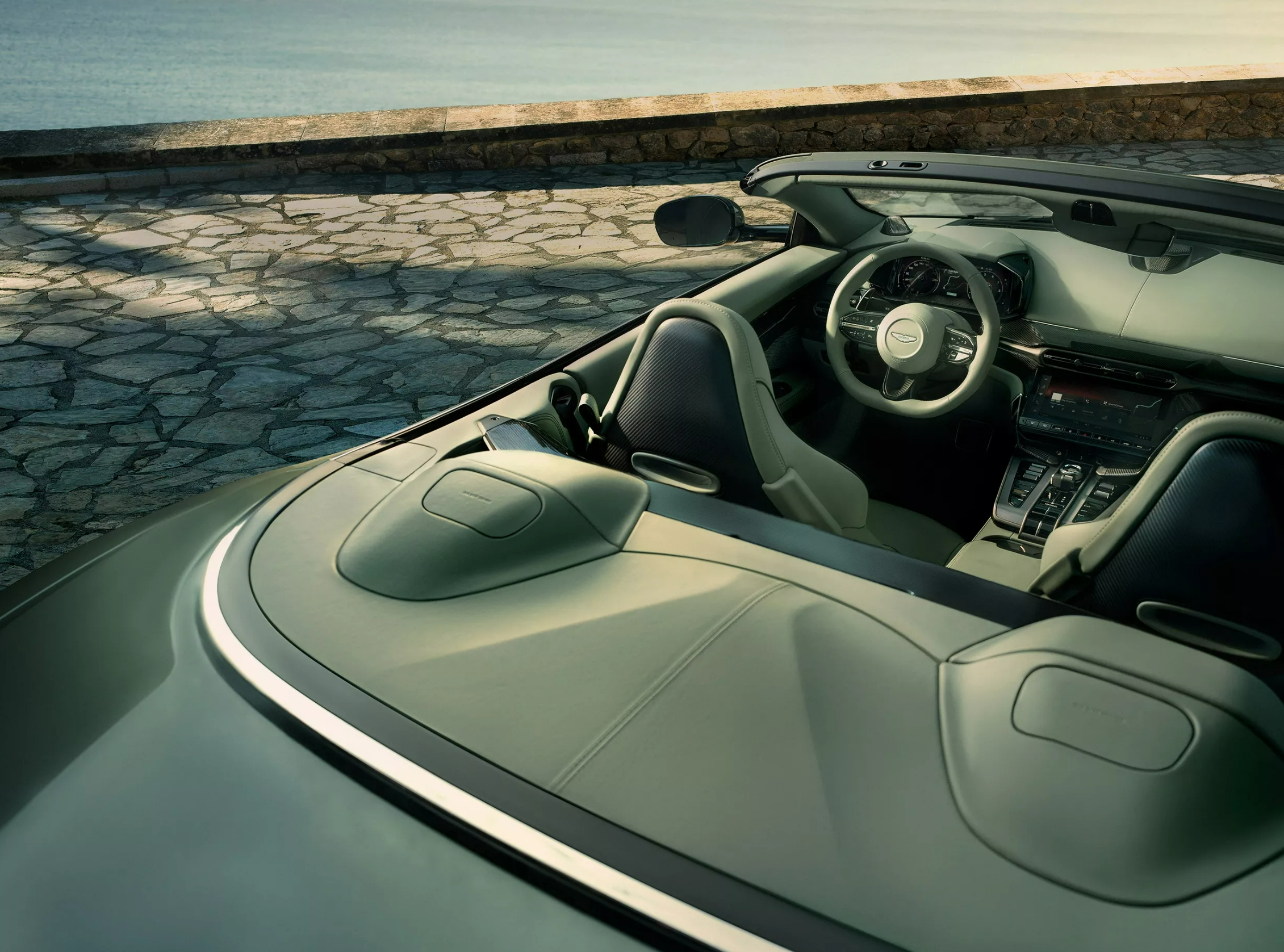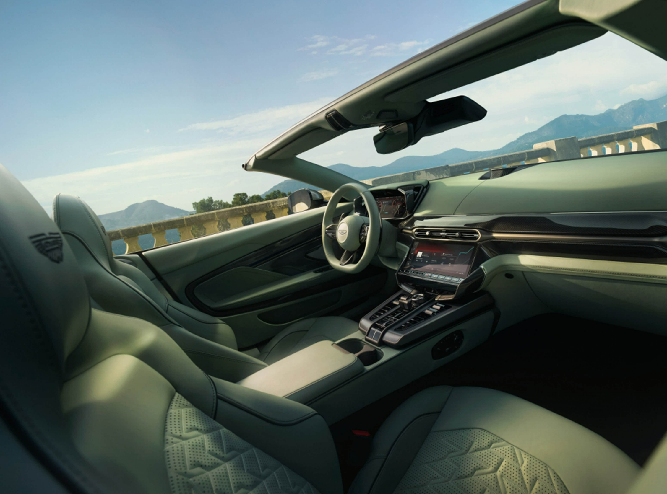 全新Vanquish Volante的内饰延续了阿斯顿·马丁一贯的奢华格调,Alcantara材质与碳纤维饰板的搭配相得益彰。双10.25英寸屏幕构建起数字化驾驶舱,值得一提的是,新车保留了物理旋钮与按键,在触控主导的时代坚守了机械质感。