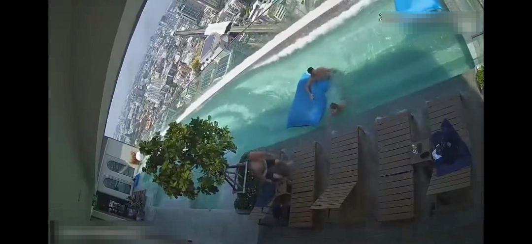 3月29日,网传一段地震瞬间监控视频引发关注。视频显示地震前一高层建筑上的露天泳池中,有人正躺在漂浮在泳池的垫子上。突如其来的强烈地震,导致泳池中水浪翻腾,泳池内和池边的人员感受到后及时逃离。视频还显示,地震中水浪不一会儿就冲破泳池边缘的玻璃护栏,池中的垫子也随着被冲走。