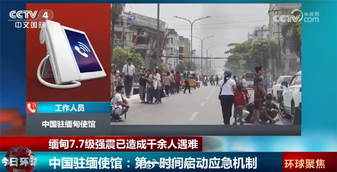 中国驻缅甸使馆工作人员此前对总台记者表示,地震发生后,中国驻缅甸使领馆第一时间启动应急机制,全力开展应急处置和领事保护工作。截至29日17时,共接收处置数百起中国公民求助,协助数十人找到失联亲友。受伤人员均在医院接受治疗。由于灾区救援工作仍在紧张进行,后续伤亡人数可能还会增加。目前已有多支中国救援队携带救援设备和物资紧急奔赴缅甸地震灾区。