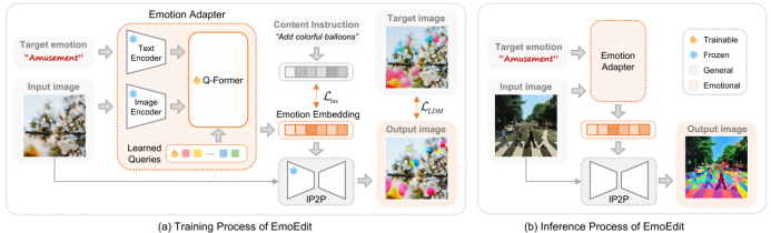提出 EmoEdit,一种基于内容感知的 AIM 框架,仅需目标情感类别作为提示词,即可在任意用户图像上实现多样化的情感编辑;