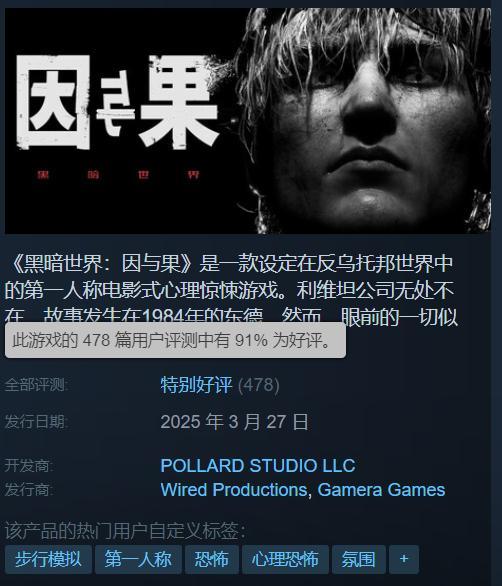游戏已于3月27日正式发售,目前好评率达91%