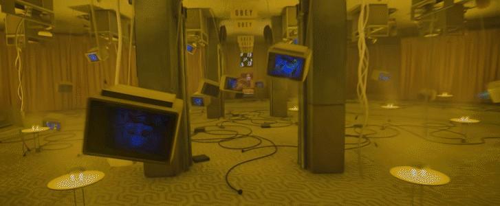 比如蕾切尔(游戏角色)的故事,她从一个糟糕的家庭里逃出来,看似获得了自由,实则掉进了利维坦的压迫。我们首先要考虑这个阶段,蕾切尔的思绪是怎样的:她不受关注,和其他人一样是利维坦的耗材,是庞大组织里微小的一份子。在视觉层面上,我们觉得与其放10万个打工人,不如用无色矩阵的形式,来体现蕾切尔的心理感受。