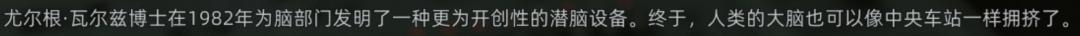 在第一章节中,玩家会获得一个博士玩偶,下面写着“终于,人类的大脑也可以像中央车站一样拥挤了。”这意味着干员不再需要局限于一对一的脑内漫游,而是可以以一群人的形式进入别人的大脑。