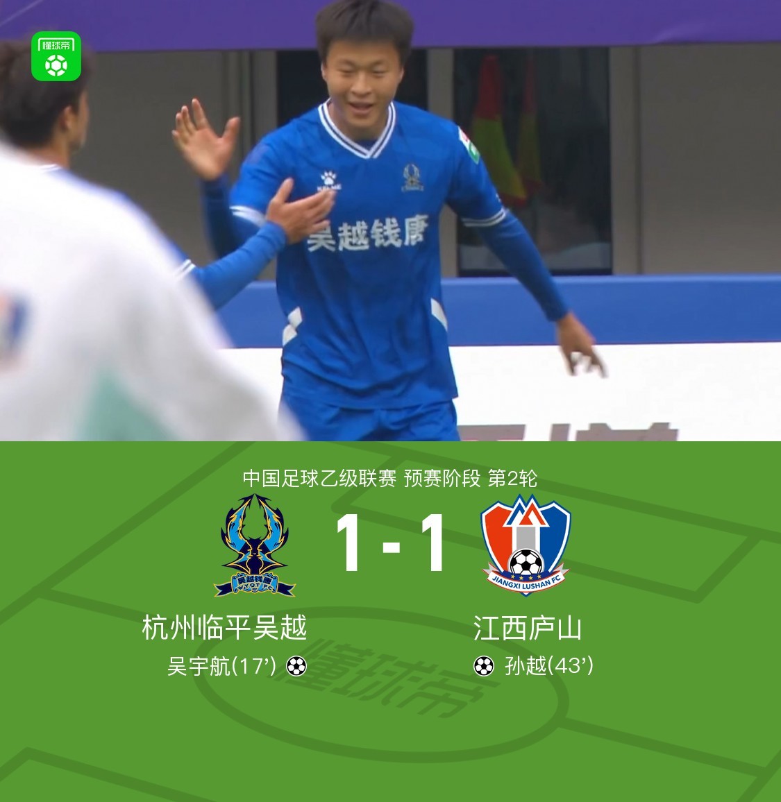 北京时间3月30日,中国足球乙级联赛预赛阶段第2轮,杭州临平吴越主场迎战江西庐山。比赛中,杭州临平吴越由吴宇航攻入一球,江西庐山则凭借孙越的进球扳平比分。最终,双方以1-1的比分握手言和。