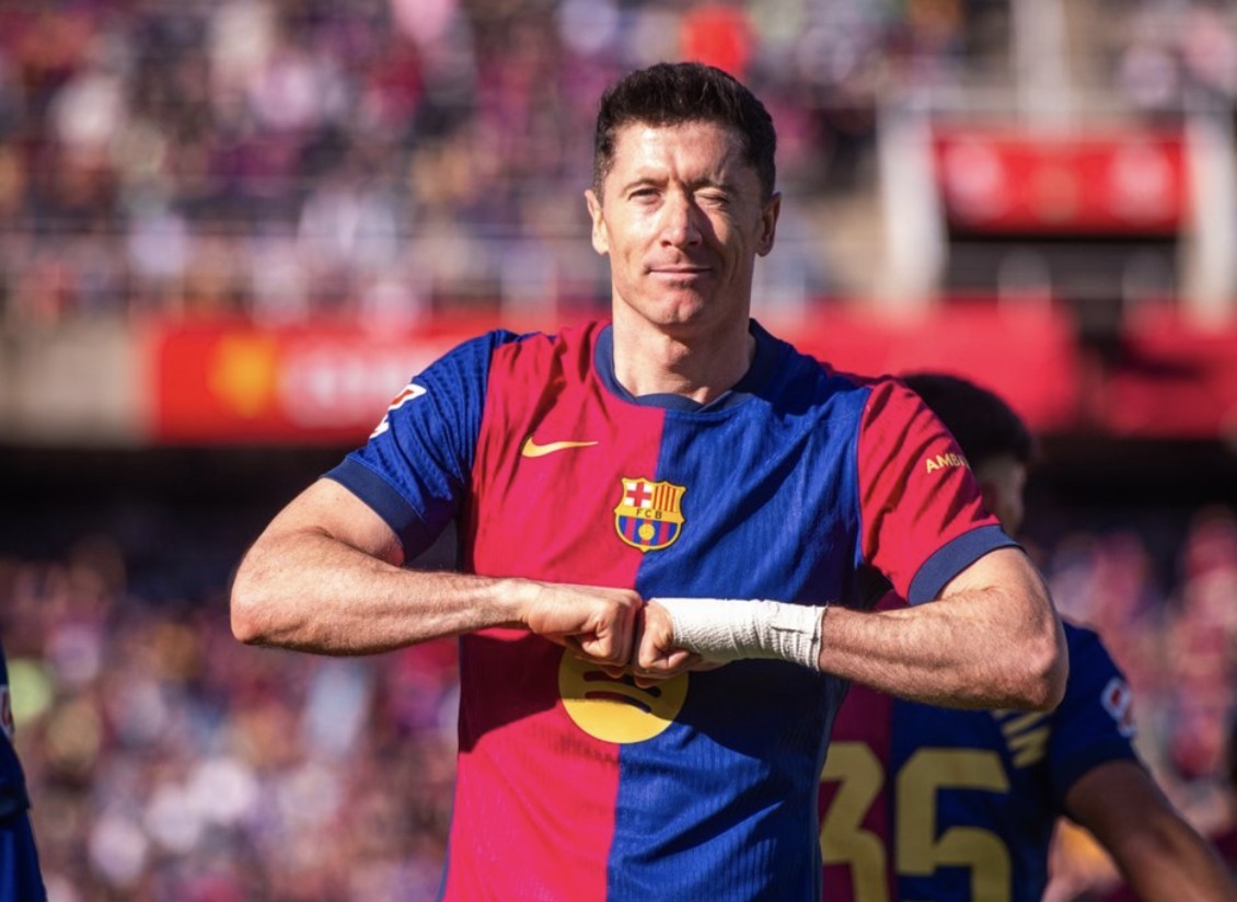 在巴塞罗那对阵赫罗纳的西甲比赛中,莱万多夫斯基在下半场梅开二度,帮助巴塞罗那3-1领先。