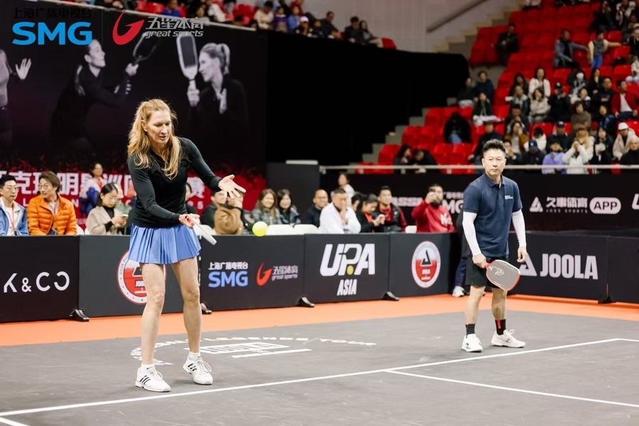 阿加西和格拉芙对匹克球的热爱,也将他俩带到近日在上海举行的2025年匹克球明星巡回表演赛。作为国内首次举办的高级别职业匹克球表演赛,本次赛事汇聚了全球顶尖匹克球选手,上演了高水平的对决。阿加西和格拉芙分别领衔战队,通过双打、单打及混双较量,让观众近距离感受到匹克球的魅力与职业水准。