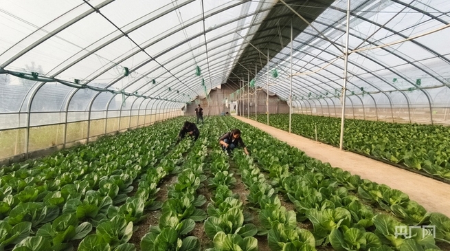 李王庄村蔬菜大棚里的甘蓝长势喜人(央广网记者 郝振青 摄)