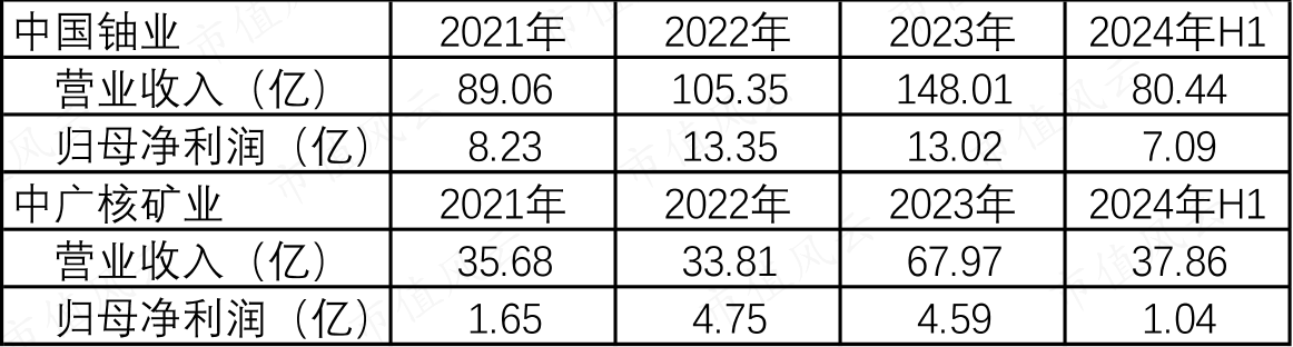 由于中广核矿业收入都是贸易业务,净利润才体现铀矿资源的盈利,所以我们直接对比净利润。