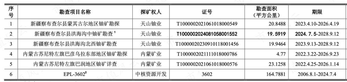 目前中国铀业拥有6宗探矿权,其中国内5宗,位于内蒙和新疆省;国外1宗,位于纳米比亚。