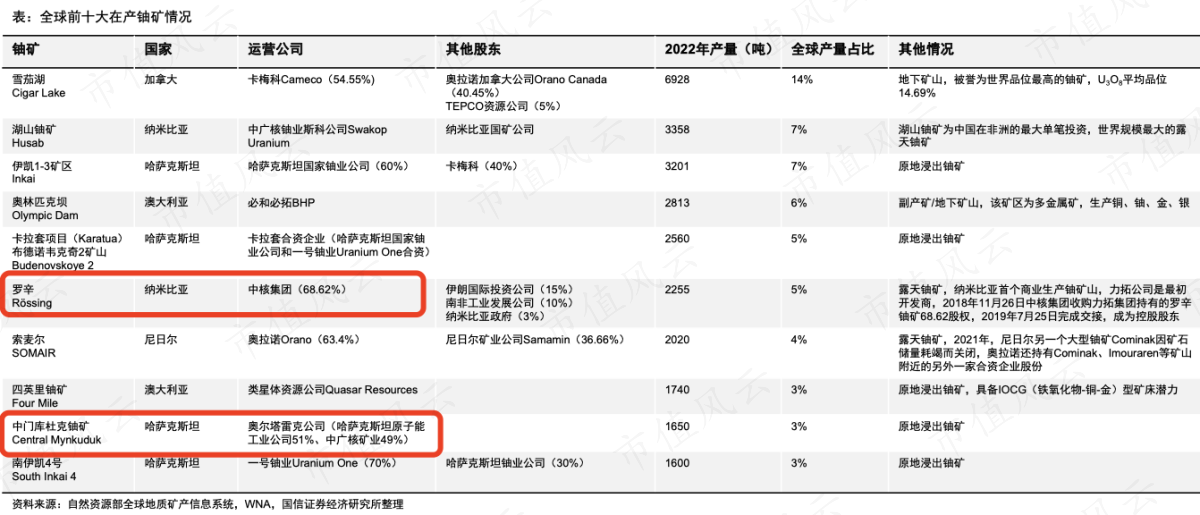 中国铀业最大的铀矿(罗辛铀矿)位列全球第六位,也比中广核矿业最大的铀矿产量排名(全球第九名)更前,且权益的持股比例更高。