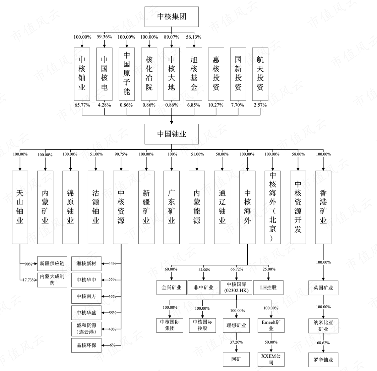 从股权关系来看,中国铀业并不是A股中国核电(601985.SH)的子公司,而是中国核电的兄弟公司,上市公司中国核电的实际控制人也是中核集团。