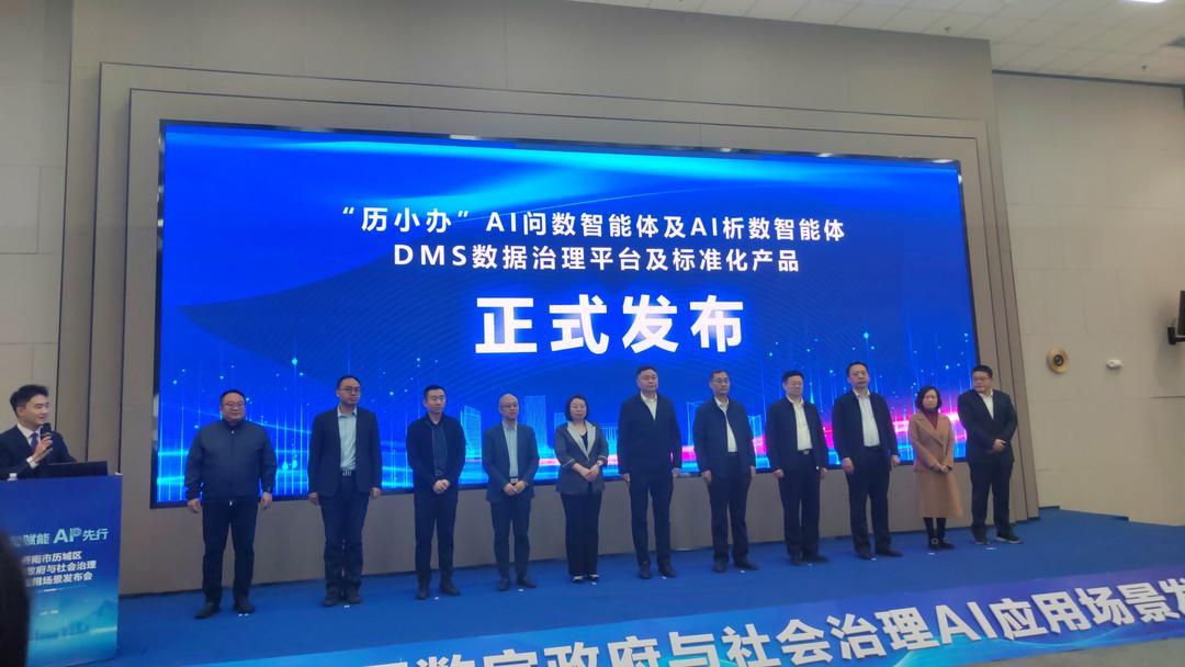 发布会上,领导们共同登台,按下启动键,历城区数字政府与社会治理AI应用场景正式官宣发布。