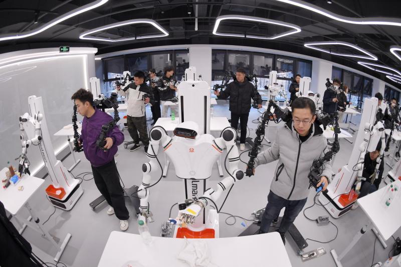 “目前,我们首批30名数据采集师,也可以说是机器人的老师已经上岗,主要教人形机器人学习抓、拿、取、放等基本动作,机器人在老师的指导下,进行抓瓶子、叠毛巾、按按钮等较为复杂的操作。”人形机器人数据训练中心负责人张钦锋介绍。