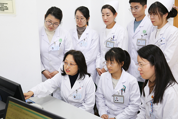 吕伟(左下一)团队分析市民检查报告