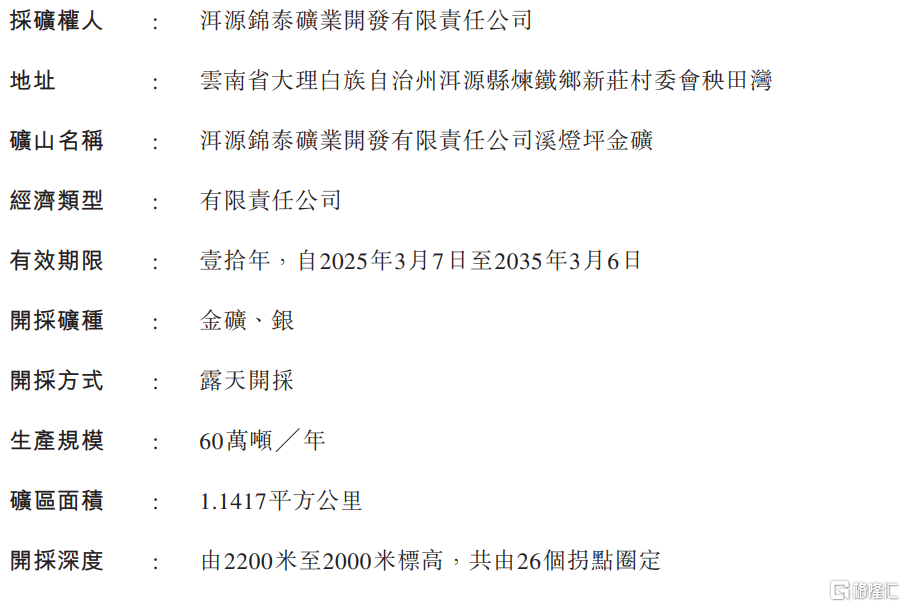 格隆汇3月31日丨赤峰黄金(06693.HK)宣布,公司控股子公司洱源锦泰矿业开发有限责任公司于2025年3月31日取得由云南省自然资源厅颁发的一宗采矿许可证。