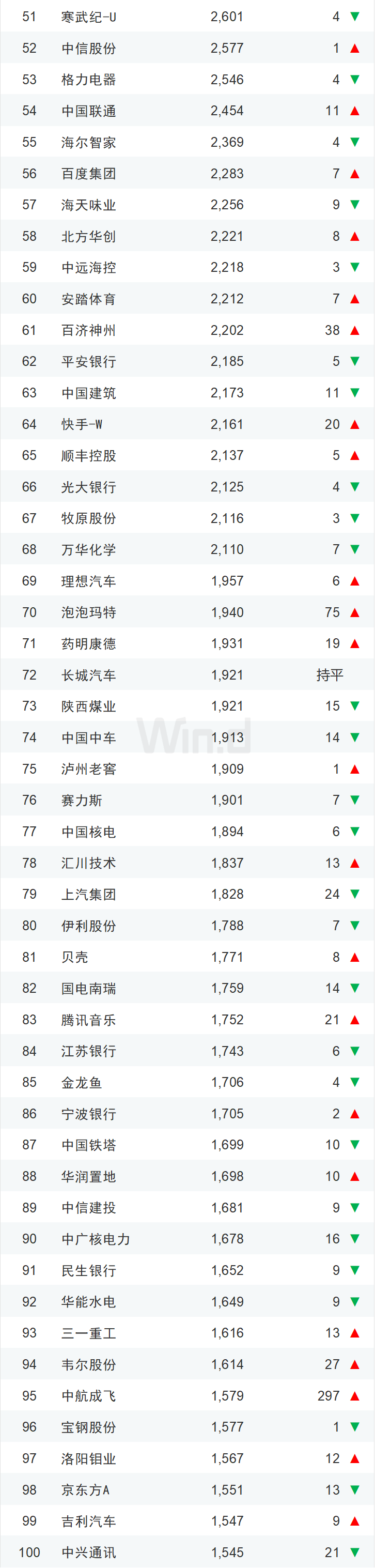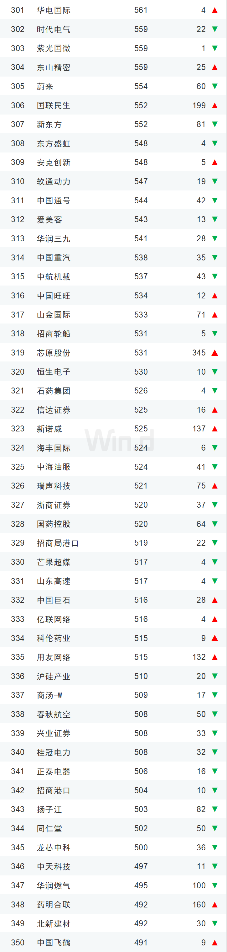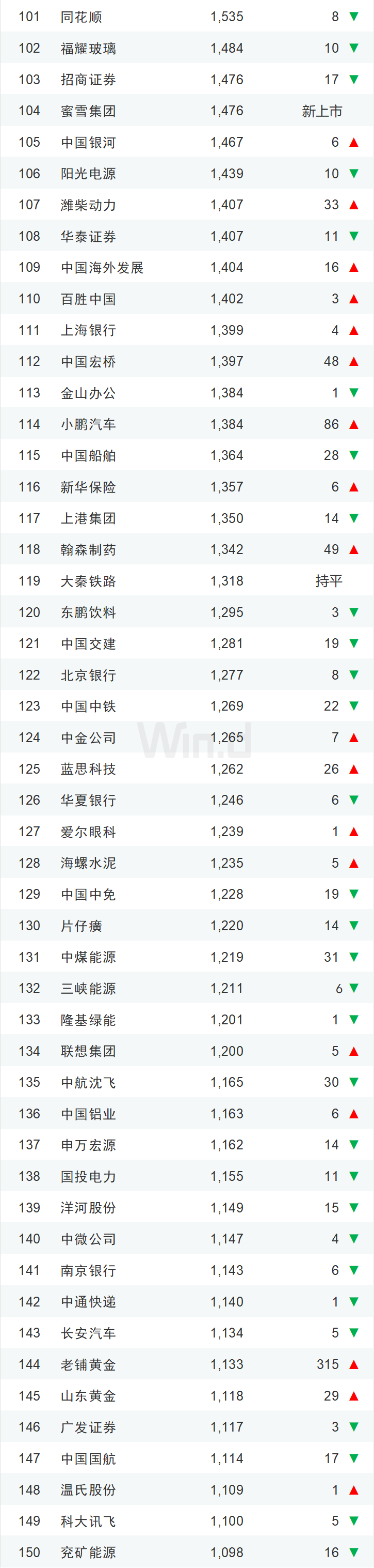 3、A、H股统计3月31日市值,海外上市股统计3月28日市值。