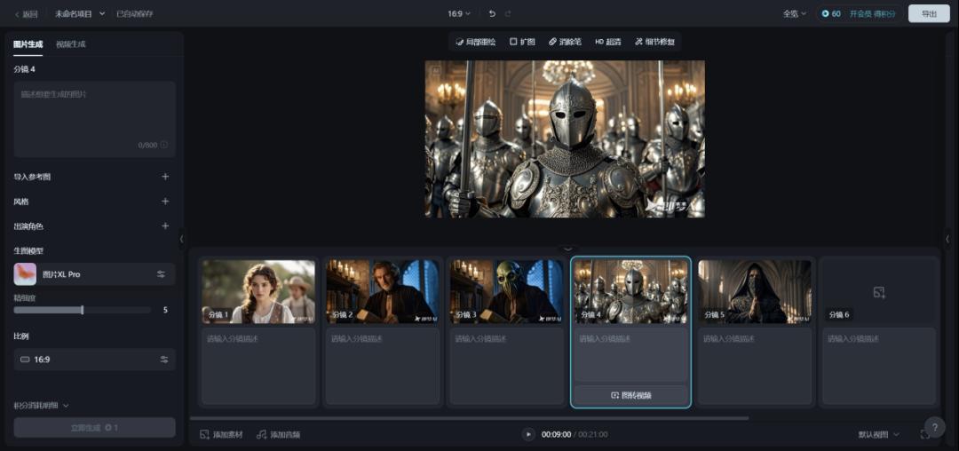 然后是文生图,随着创作者完善分镜脚本这一步后,再使用MidJourney、可灵、即梦、vidu等工具完成文生图,以合理的提示词形成视觉画面。