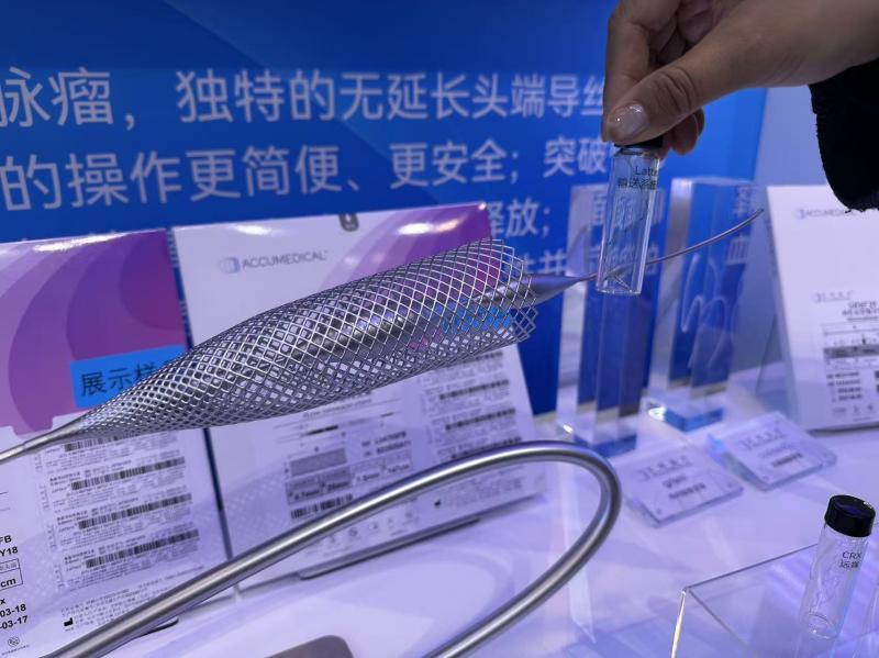在这一展台的对面,艾柯医疗器械(北京)股份有限公司的展位上摆放着一个大约成年人小臂大小的支架模型。它正是公司核心产品Lattice血流导向密网支架(以下简称“Lattice”)放大约300倍的样子,实际上这个支架只有2—5毫米。这枚精巧的支架将被临床医生放入患者的脑血管,为颅内动脉瘤患者带去希望。“这类产品最早只有美国公司有,我们不仅打破了垄断,还在这款产品上实现了很多技术,比如机械球囊、MIROR表面改性技术等还实现了世界首创。”艾柯医疗董秘丁邻表示,Lattice血流导向密网支架术后12个月动脉瘤成功闭塞率为91.4%,术后12个月支架内狭窄率仅为0.8%,大幅优于同类产品。艾柯通过以上多项突破性技术创新,大幅降低了临床医生手术操作难度、缩短了手术时间、提高了患者治愈率及手术安全性,使颅内动脉瘤治疗进入“自动档”时代。